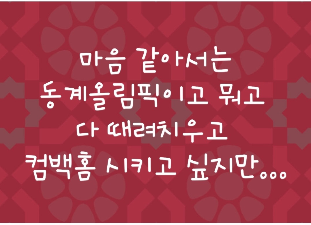 마음 같아서는 동계올림픽이고 뭐고 다 때려치우고 컴백홈 시키고 싶지만...