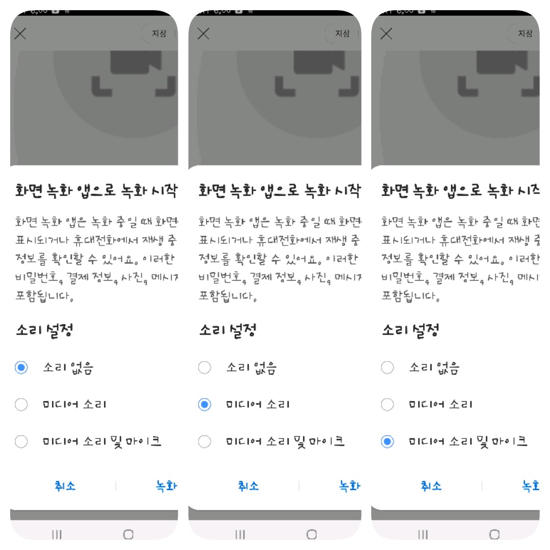 14. 《화면녹화》를 선택하면 《3개의 소리설정》이 나타납니다.
