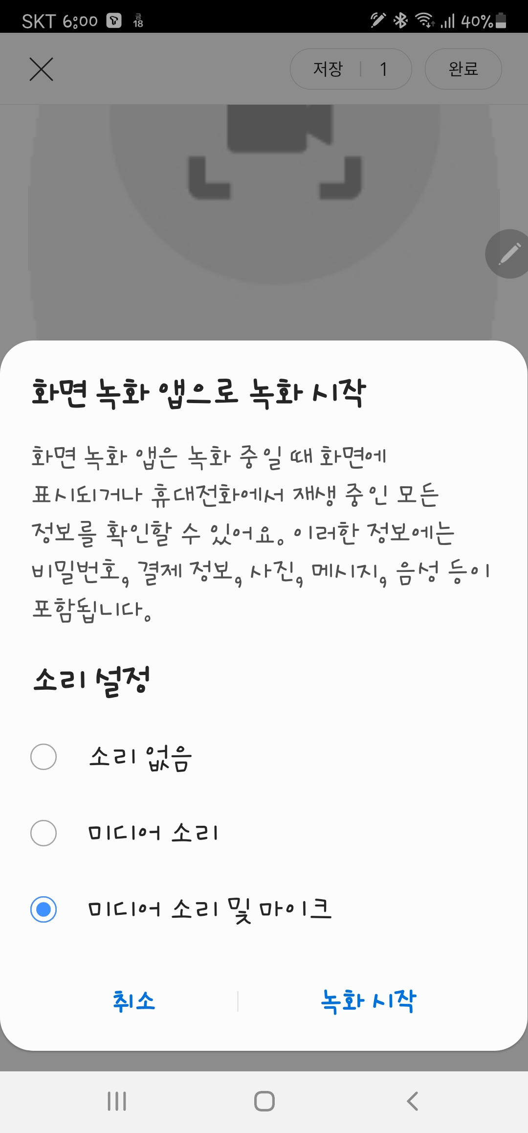 16. 두번째 《미디어 소리》는 화면에 나오는 소리(동영상 포함)를 화면과 함께 녹화하겠다는 뜻이고,