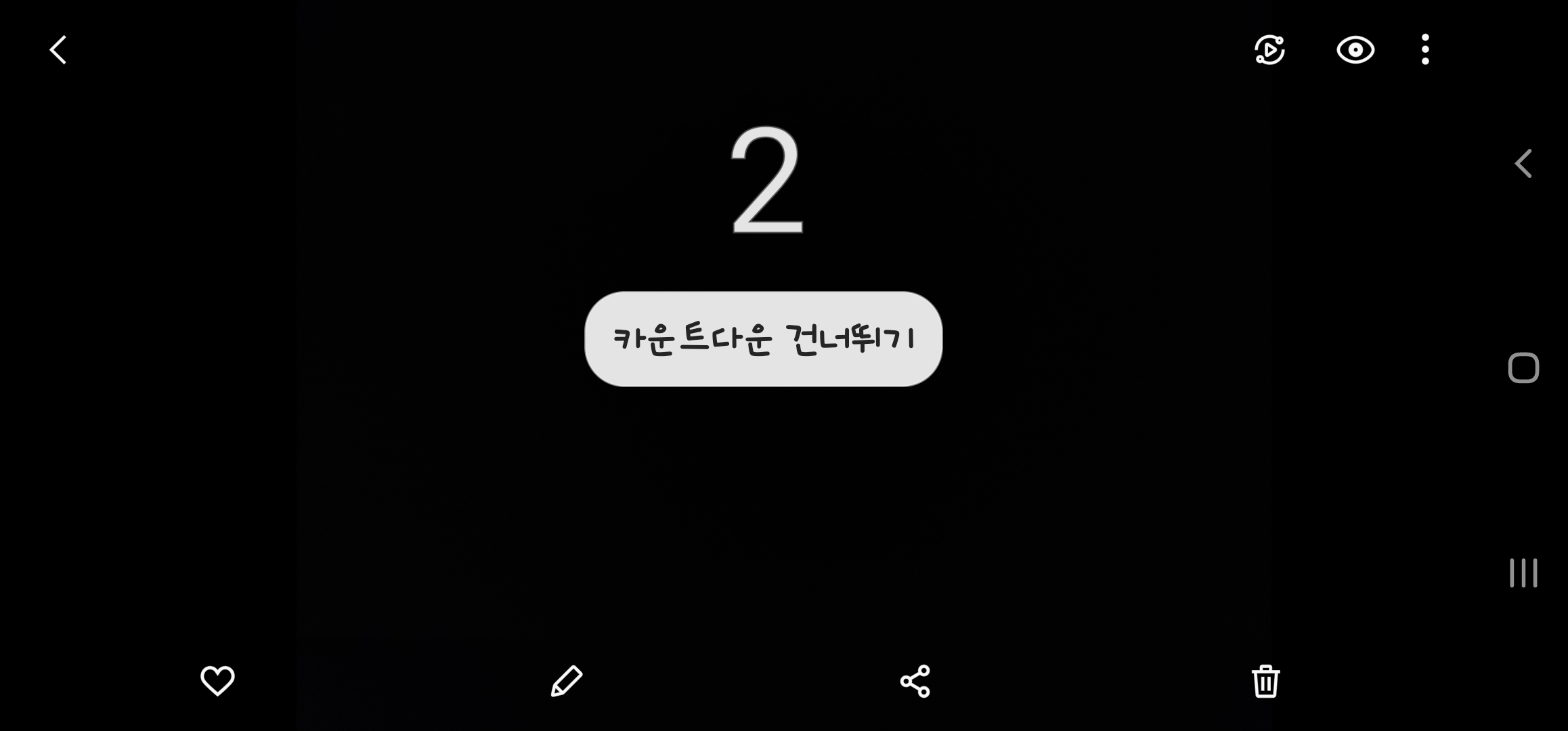 20. 녹화 시작 버튼을 누르면 《3초의 화면 카운트다운》이 시작되는데, 기다리기 싫으면 《카운트다운 건너띄기》를 누르면 녹화로 바로 전환됩니다.