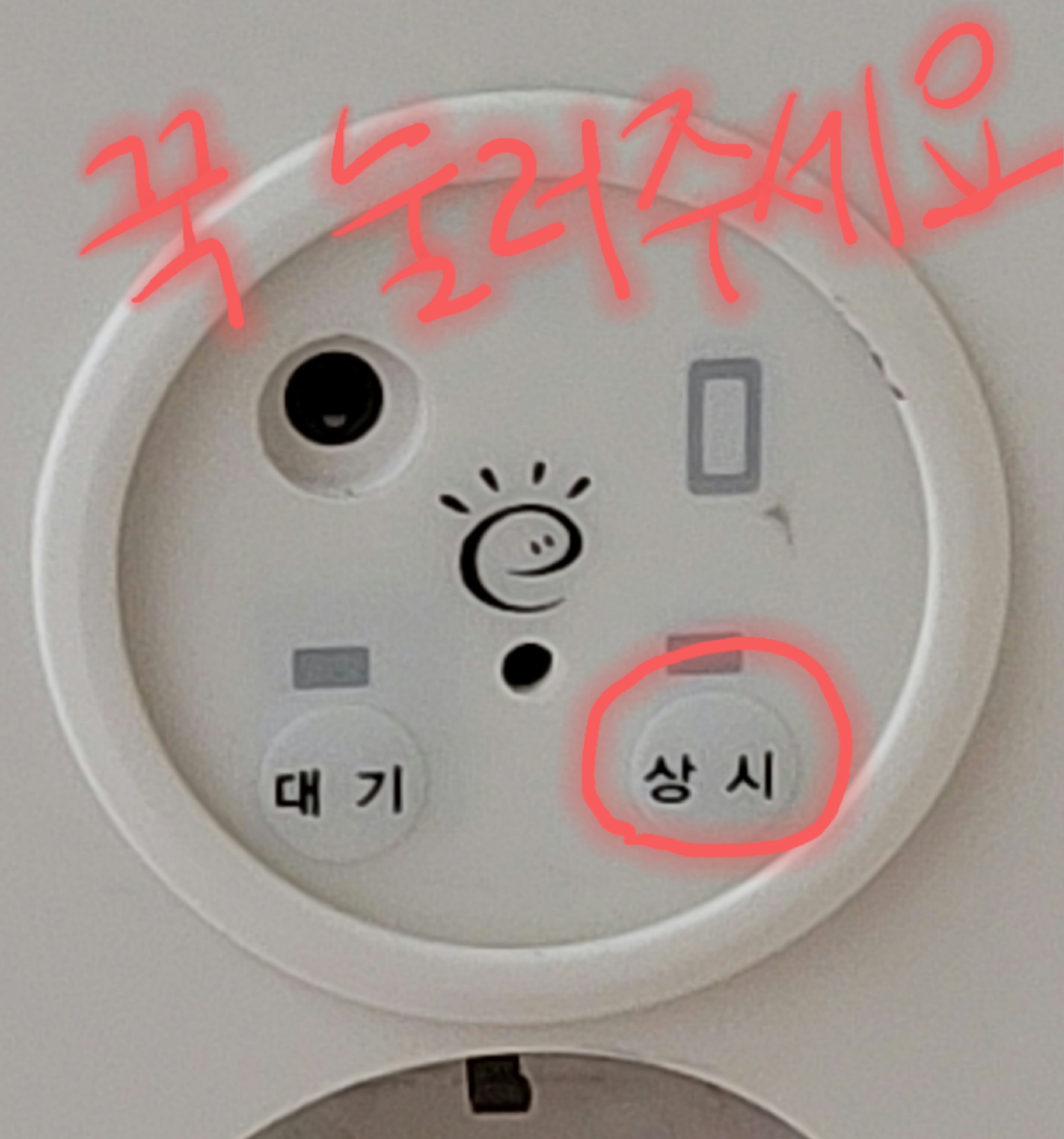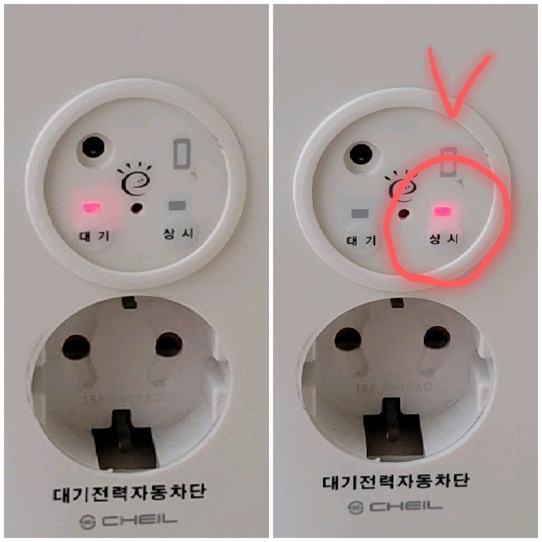 5. 콘센트로 가서 상시라고 되어있는 부분을 손가락으로 꾸욱~~ 눌러 주면 불이 들어오고 다시 전기가 통하게 되니 해보시길 바랍니다.