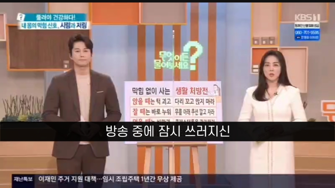 [방송사고]KBS '무엇이든 물어보세요' 생방송 도중 출연자 실신 full 영상