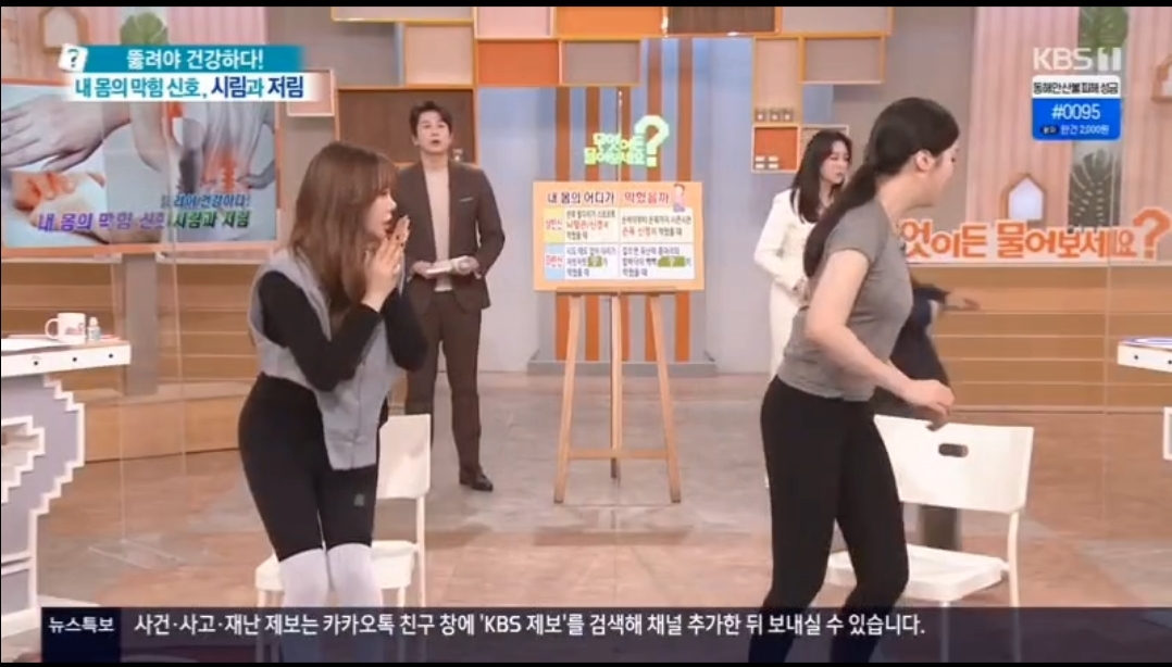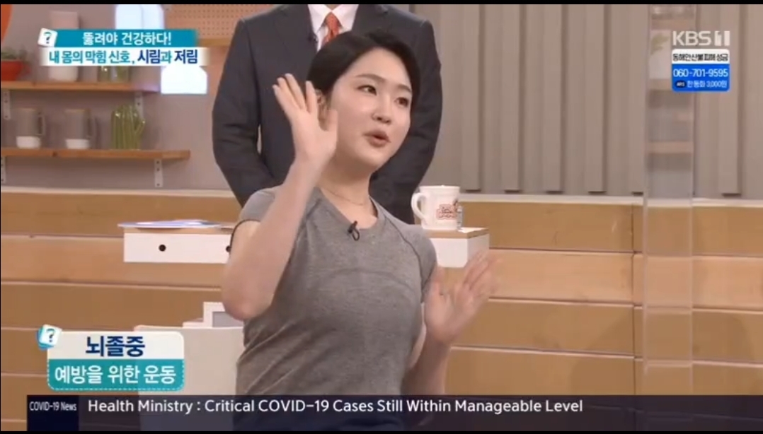 타임이 되어 '운동처방사 유진영'씨가 나와 《뇌졸중 예방에 좋은 운동법》을 시연하는 순서가 되었구요.