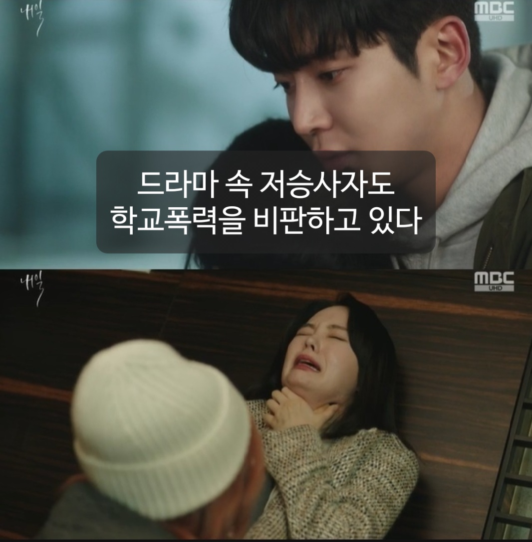 물론 드라마였지만 《내일》에서는 저승사자로 나오는 김희선에 의해 가해자가 처벌(?)을 받는 사이다 장면이 연출됩니다. 그로인해 TV를 시청하고 있는 사람들은 카타르시스를 접하게 되었을 것입니다.