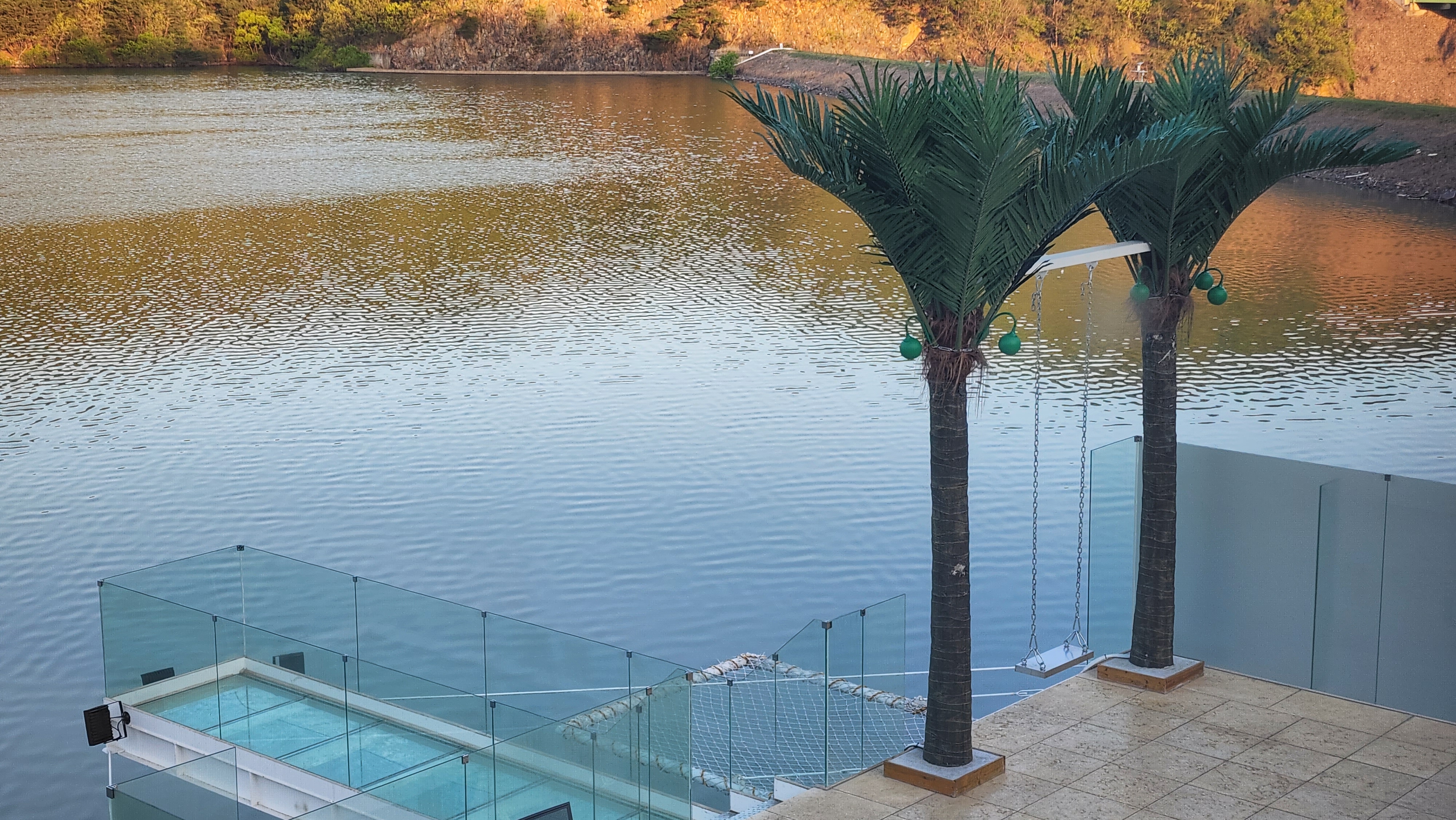 그리고 외부 풀에서 호수쪽으로 난 부분에 하늘전망대가 짧게 나와있고, 바로 그 옆으로 그네가 있는데 미끄러워 사진만 살짝 찍고 패스 했습니다.