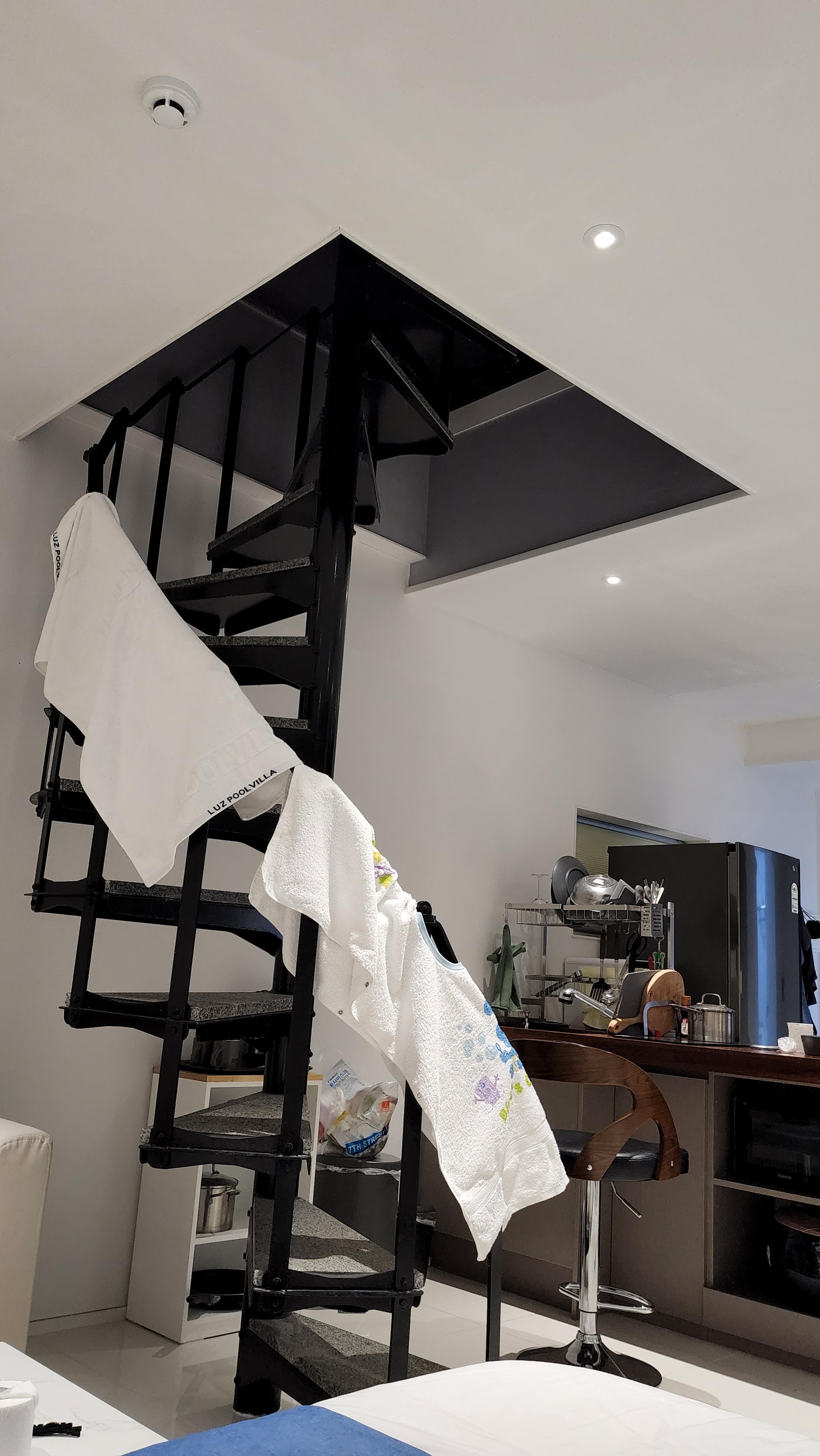 수영하고 닦은 수건을 계단 난간에 걸어놓고 그대로 찍은 사진뿐이네요😅