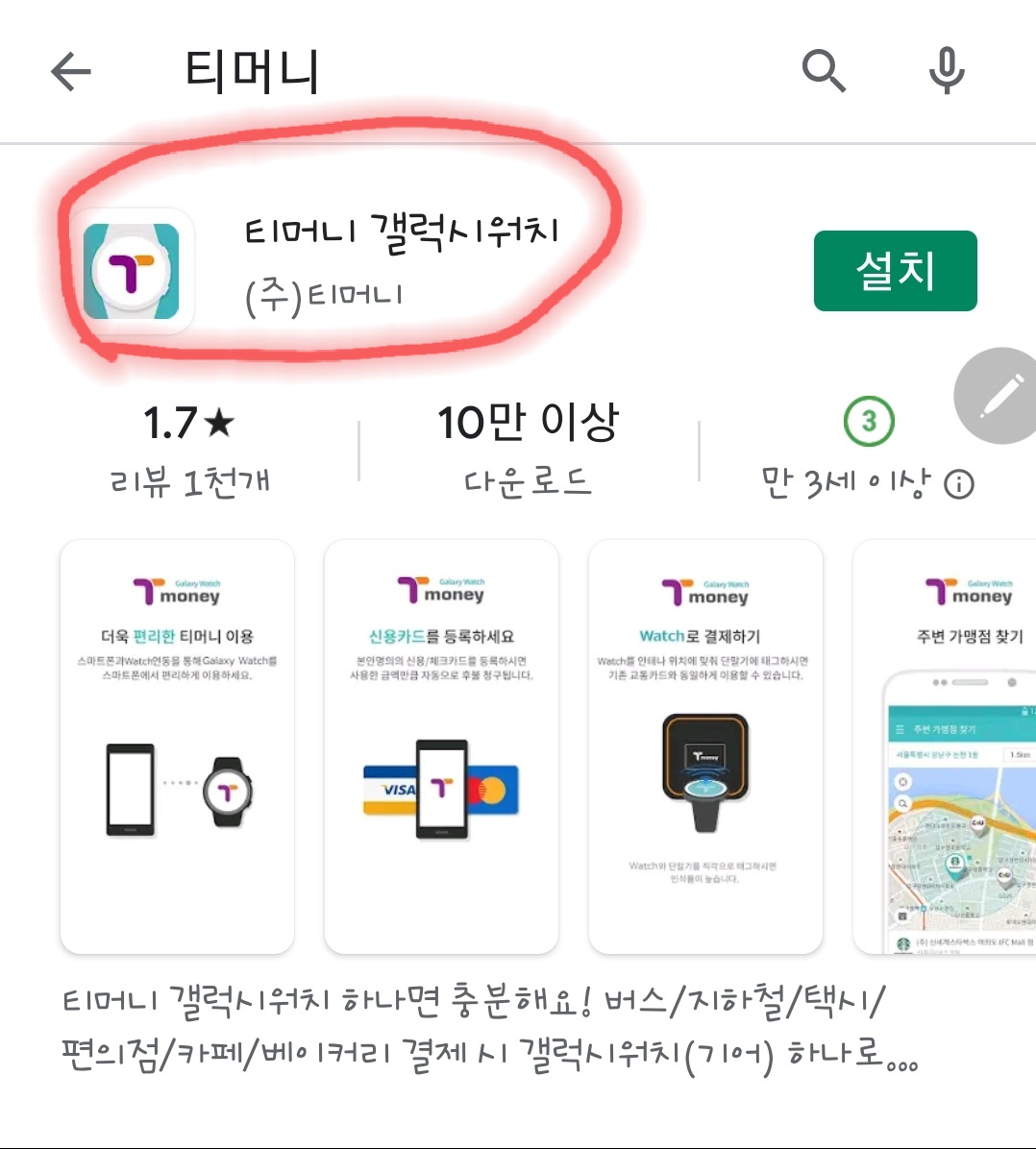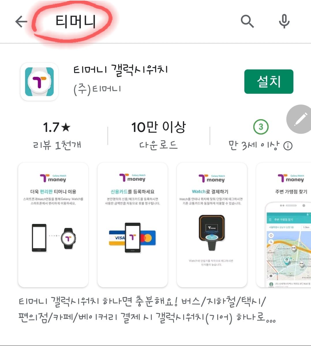 ※※ 서두에 말씀드렸던 것처럼 티머니를 이전에 사용할 기회가 없었기에 스마트폰에 기본적으로 깔려있어야하는 티머니 어플이 없다는 얘기인가 봅니다. 그래서 다시 플레이 스토어에서 《기본 티머니》를 깔았습니다.