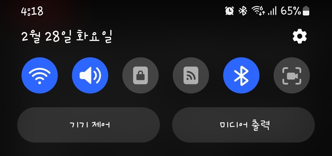 1. 우선 스마트폰을 위에서 아래로 긁어내려 아래와 같은 화면이 나오게 합니다.