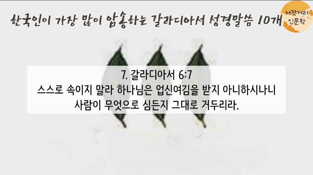 [성경암송] 한국인이 가장 많이 암송하는 갈라디아서 성경말씀 10개