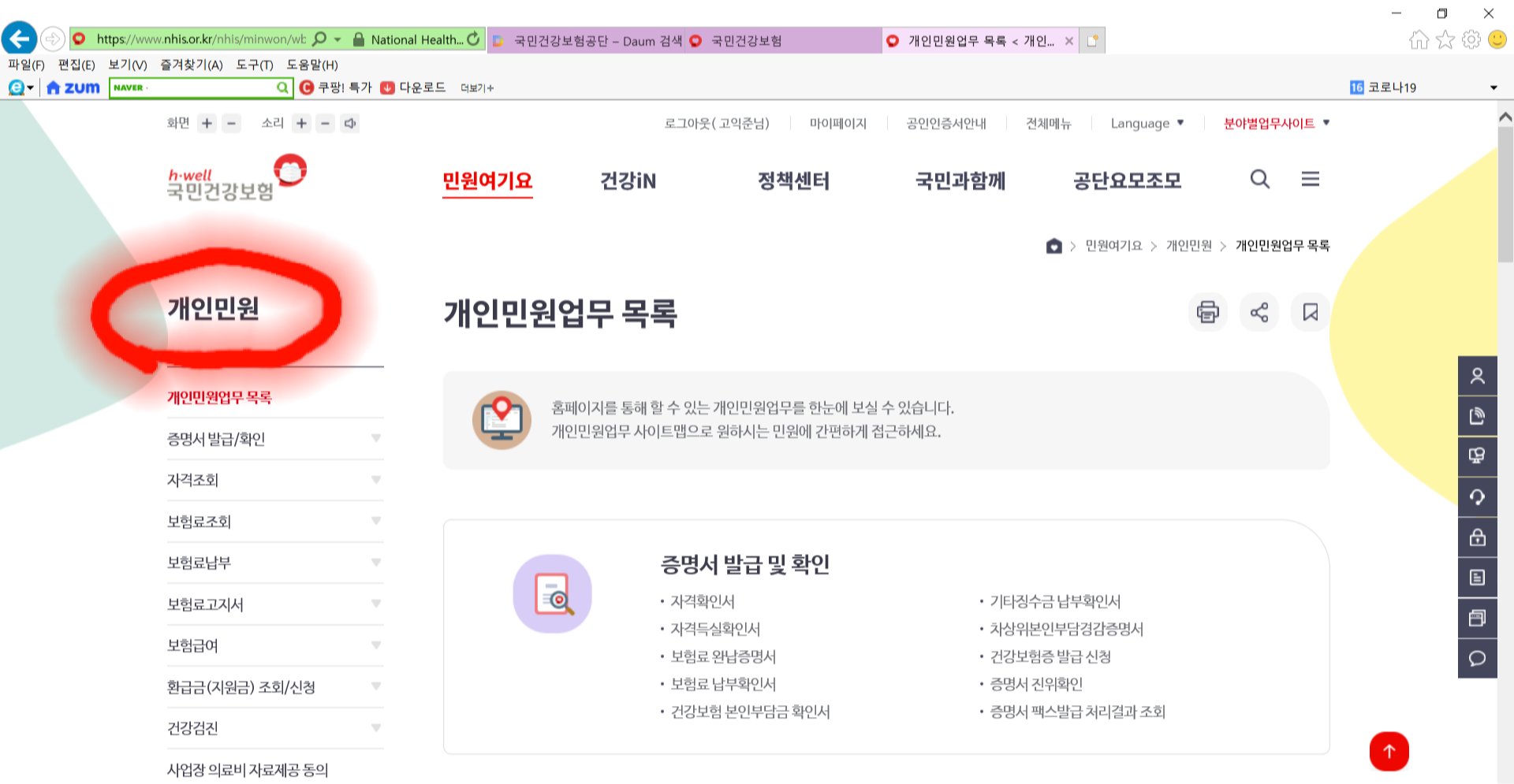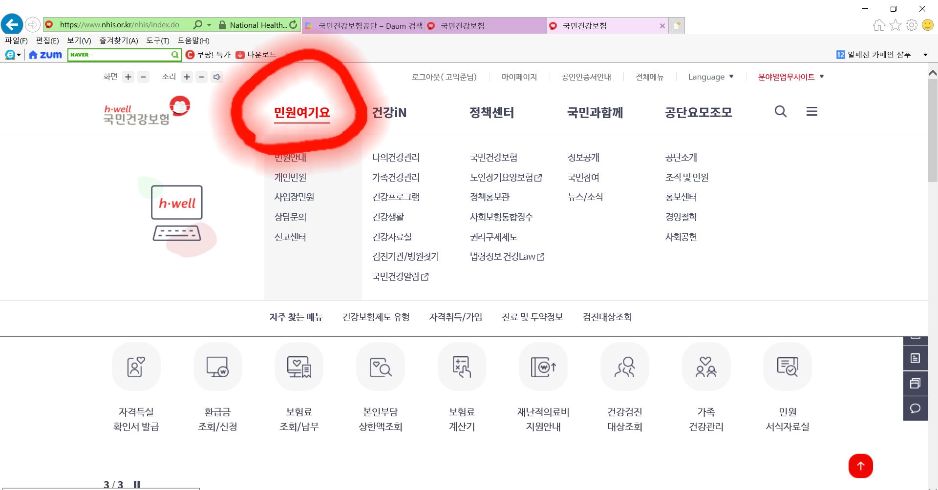 국민건강보험공단이 홈페이지를 변경하는 바람에 이런 수고를 다시 하네요. 참으로 어이가 없습니다.
