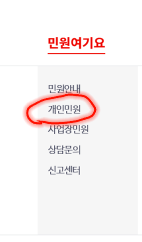 2. 민원요기요에서 《개인민원》을 클릭합니다.