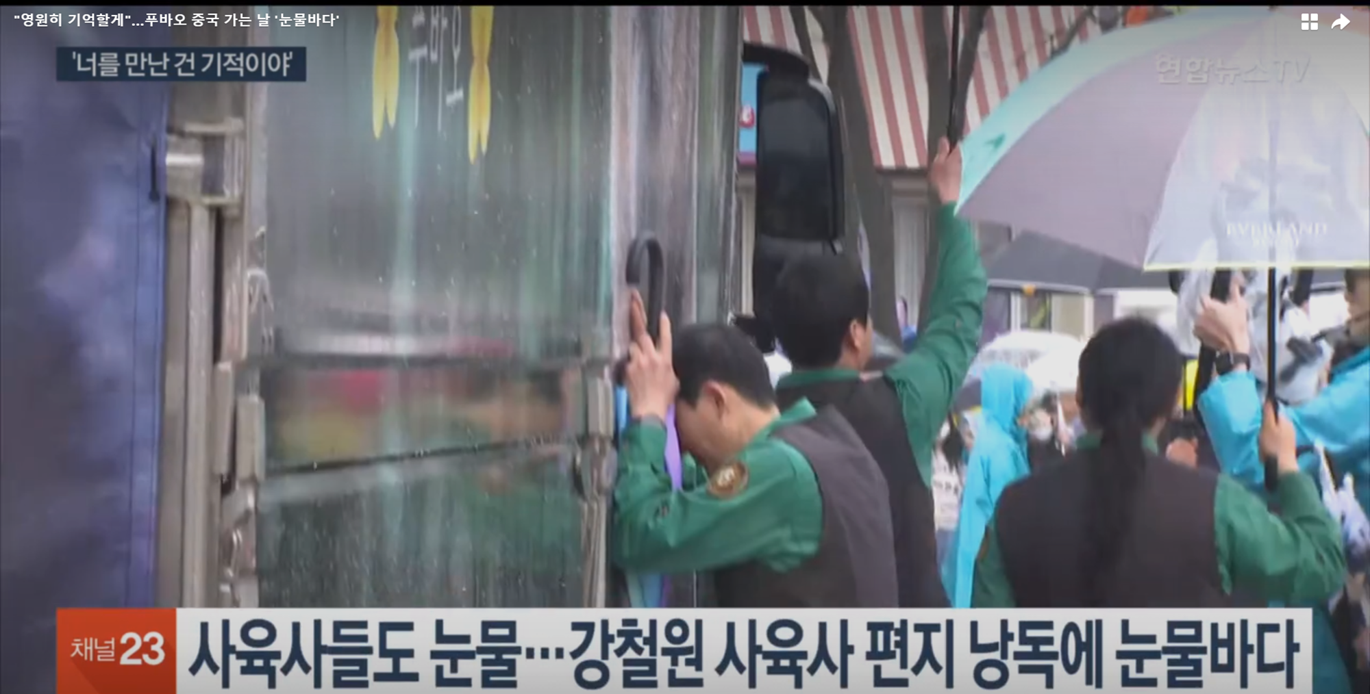 [앵커] 많은 사랑을 받아온 자이언트 판다 푸바오가 우리나라를 떠났습니다. 특수 차량에 태워진 푸바오는 얼굴을 볼 수 없었지만 빗속에 찾아온 팬들과 석별의 정을 나눴습니다. 팬들도 사육사