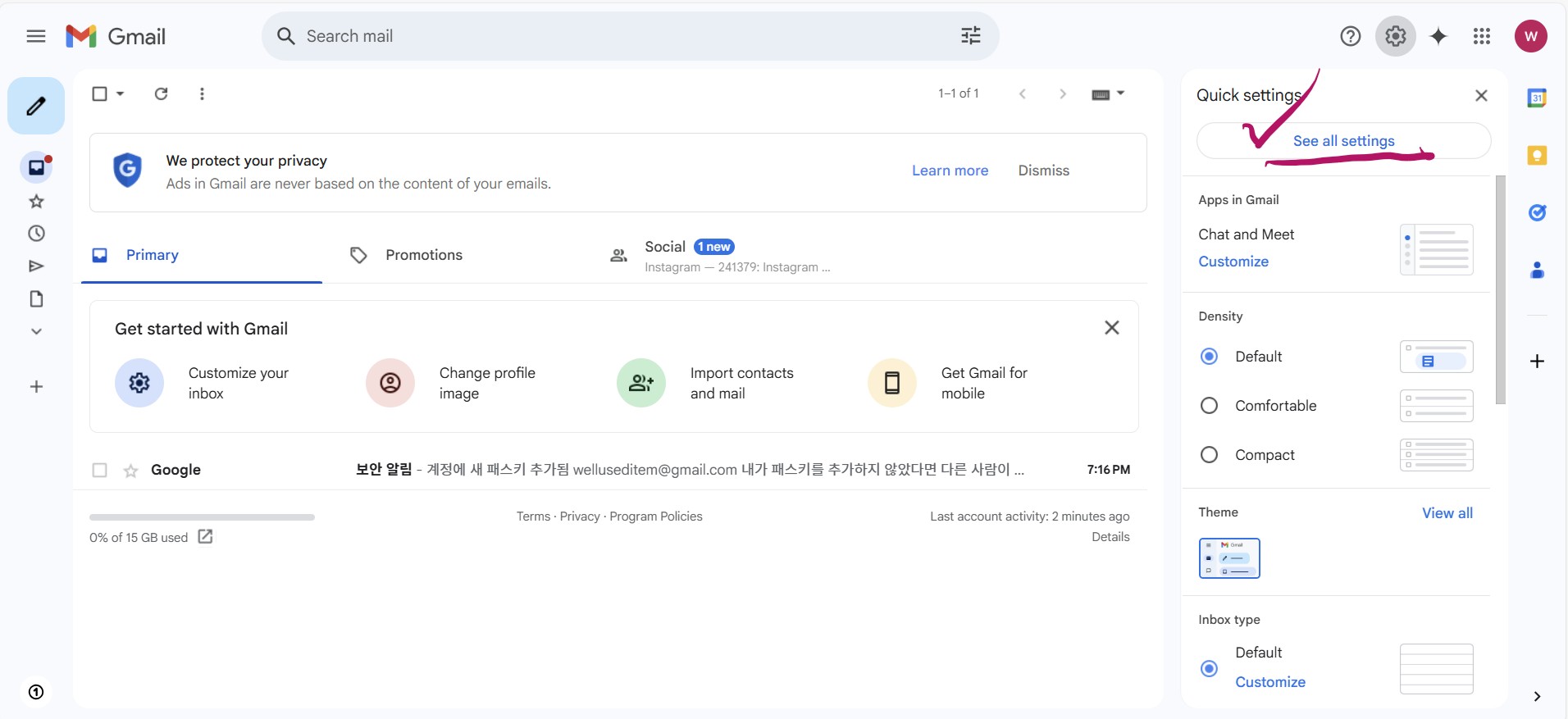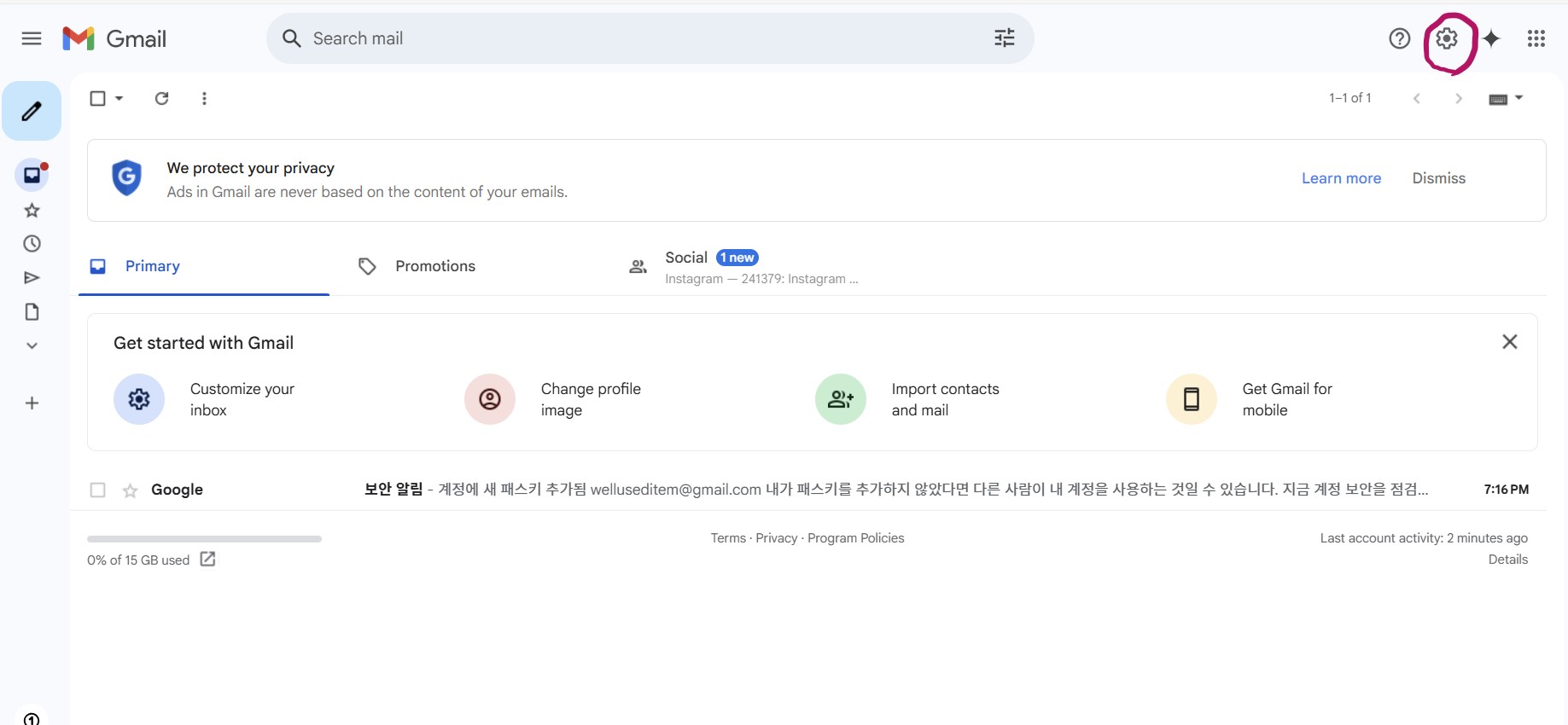 1. 먼저 구글 지메일에서 톱니바퀴를 눌러주고