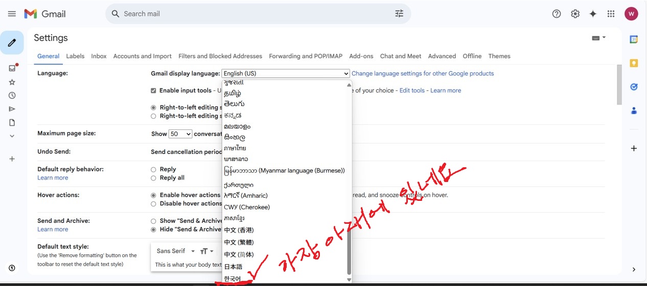 구글 지메일에 가입하고 계정을 만들려는데, 어라 전부 영어가 나오네요.