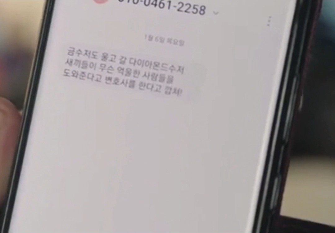 그런가 하면 하상기는 언론에 오르내리는 로스쿨 음서제 명단에 이름을 올립니다. 그저 평범한 법조인이 되고 싶었을 뿐인데 “재벌가 자식”이라는 꼬리표는 그가 아무리 노력해도 지워지지 않습니다. 수백 통의 문자와 전화, 의심과 비난 속에서 그는 결국 말합니다. “난 그냥 법 공부를 했을 뿐인데...” 부끄럽지 않은 삶조차, 누군가에겐 이유 없는 특권으로 보일 수 있다는 걸, 이 드라마는 묵직하게 보여줍니다.