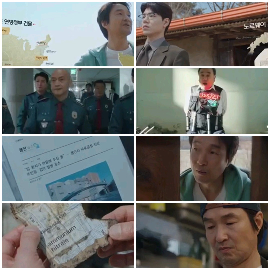 신사장은 잡초의 고시원 방에서 발견한 기사 스크랩들을 통해 용단시 비료공장 인근에서 주민들이 집단으로 암에 걸린 사건을 알게 되고, 이상현이 사실은 그 비극의 피해자 가족이라는 사실에 접근합니다. 바로 이 시점에서 최철 형사가 다시 등장하며, 그의 과거 회상 속에서 신사장의 아들 준이와 연결된 비극적인 사건이 암시되고, 신사장의 본명이 ‘신재이’라는 사실이 드러나며 인물 관계는 한층 더 무겁게 얽혀갑니다. 최철은 여전히 15년 전의 사건으로 죄책감을 안고 신사장을 바라보고, 신사장은 과거의 아픔을 숨긴 채 현재의 협상가로서 냉정히 사건에 임합니다.