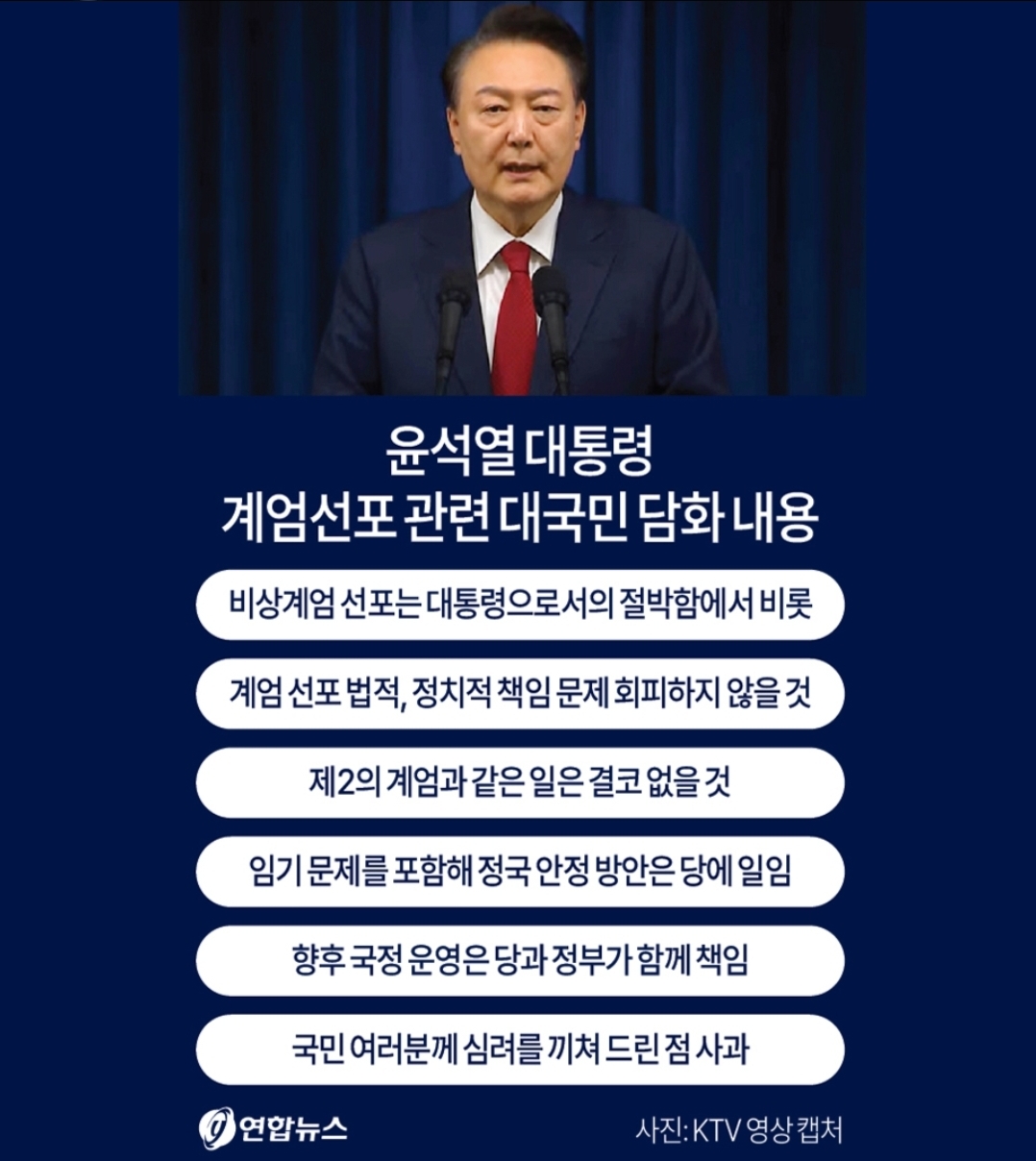 🔸️오후 10시 27분~28분 : 윤 대통령이 담화를 통해 대한민국 전역에 비상계엄을 선포했습니다.