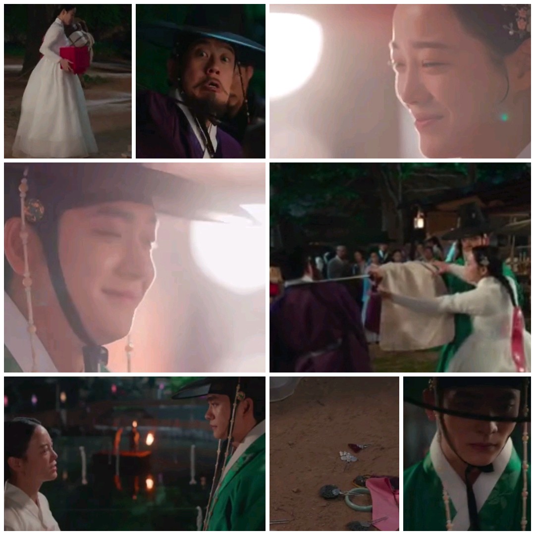 그러나 감정이 깊어지려는 순간 갈등이 터져 나오는데 양반 이판이 달이를 희롱하는 자리에서 이강이 돌연 개입하며 분노를 드러냈고 그 과정에서 자신의 신분을 숨기고 있던 세자라는 사실이 드러나자 달이는 큰 충격에 빠지게 됩니다. 이런 가운데 자신이 죽은 세자빈의 그림자처럼 취급받는 것이 아니냐며 상처를 숨기지 않고 드러냅니다. 이강은 그녀를 잃을까 두려워 말을 잇지 못하고 달이는 세자라면 백성에게 사과하고 백성을 사랑하라는 말을 던지며 등을 돌려 떠납니다. 그 순간 이강은 참을 수 없다는 듯 그녀의 손목을 붙잡아 넌 대체 무엇이기에 내 마음에 뿌리를 내리느냐고 물으며 더 이상 숨길 수 없게 된 자신의 감정을 드러내고 맙니다.