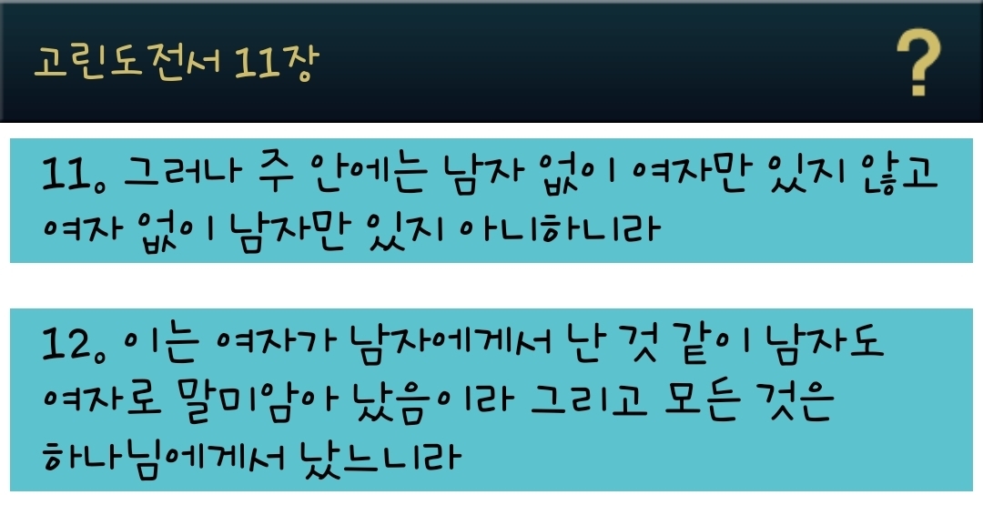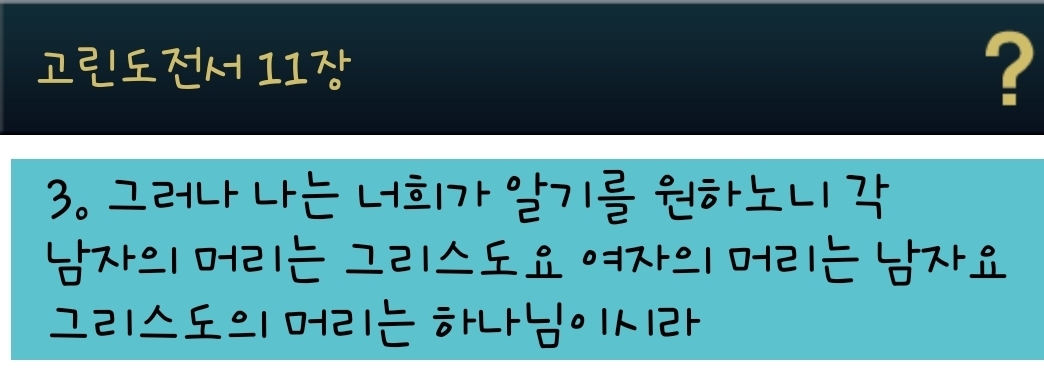 💟 2. 남녀의 역할에 대한 하나님의 질서를 지킨다. 남자의 리더십과 여자의 돕는 베필의 역할을 지켜야 한다.
