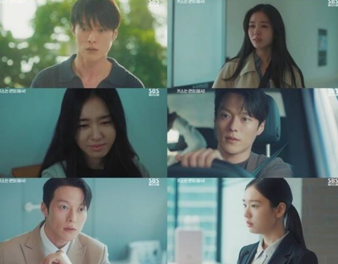 공지혁이 선우와 하영의 키스를 보게 된 순간부터 6화는 이미 감정의 방향이 바뀌기 시작했는데요, 특히 지혁이 그 장면을 보고도 다림이 보지 못하도록 갑자기 끌어안아 시야를 가려버리는 행동은 그가 선우를 단순히 팀원이나 동료로 보지 않는다는 사실을 스스로도 인지하지 못한 채 반사적으로 드러낸 순간이었고, 지혁은 순간적으로 바바리맨이 있다는 말까지 만들어내며 서둘러 다림을 자리를 피하게 만들었습니다. 그리고 선우가 하영과 키스를 하는 이유 역시 다림과 선우 사이의 진짜 관계를 모르는 지혁에게는 충격 그 자체였기 때문에, 지혁은 선우가 결혼을 한 상태에서 다른 여자를 만나고 있다고 확신하게 되었고, 이 오해는 그동안 조심스러웠던 그의 행동을 한층 더 직설적이고 충동적으로 바꾸어 갔습니다.