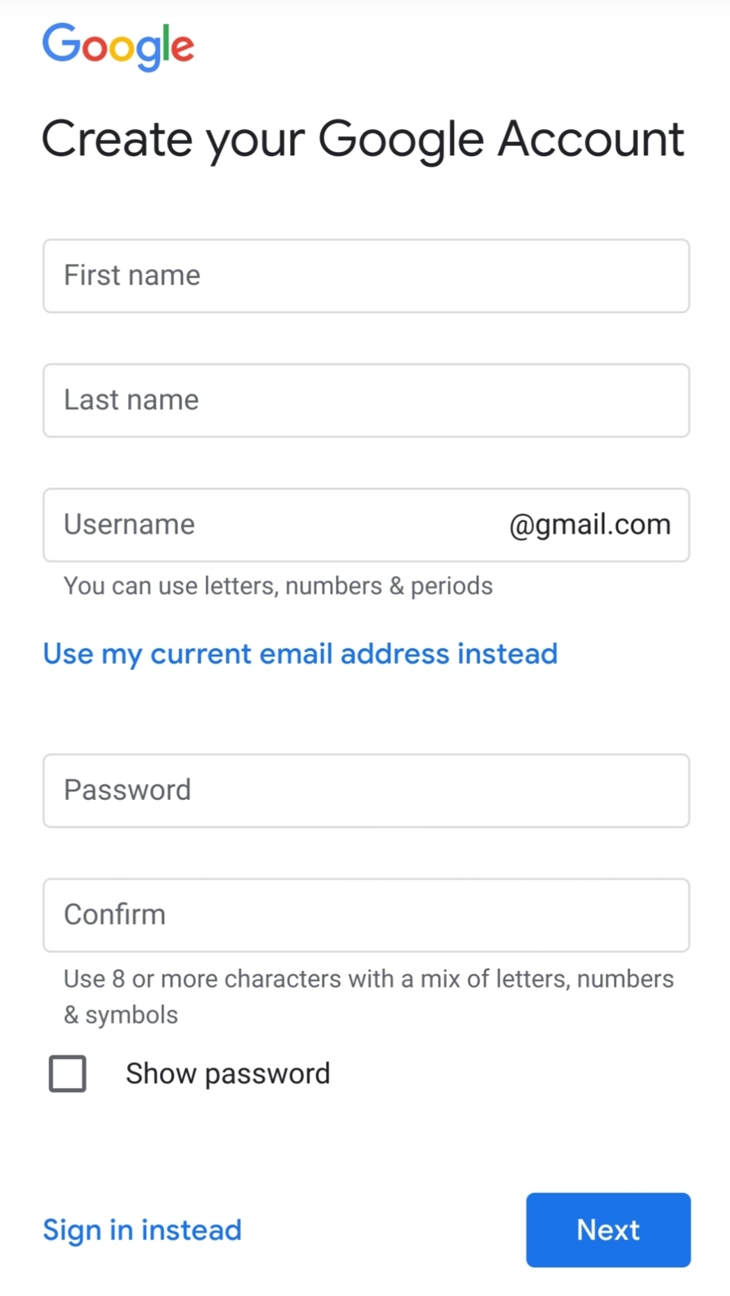 🔸️ 생년월일 : 월, 일, 연도를 정확하게 입력합니다. 구글 서비스 이용에 연령 제한이 있을 수 있습니다.