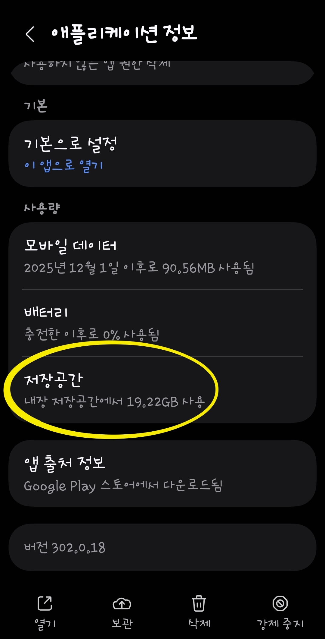 🎈저장 공간 확인 : 기기의 사용 가능한 저장 공간이 충분한지 확인하세요.