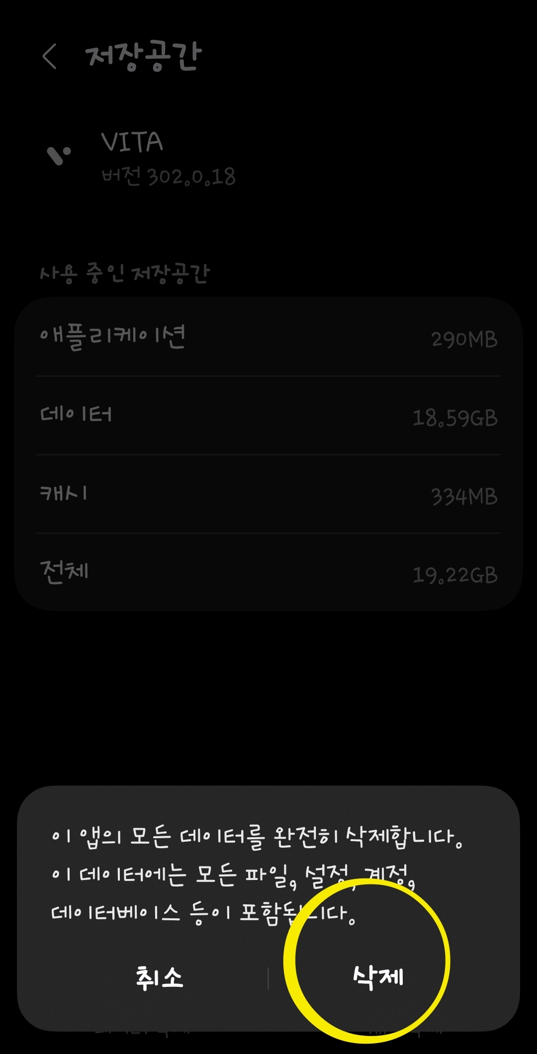 8. 그러면 비타앱이 초기화 되는데요, 작업중이던게 있었다면 사라지니 주의‼️