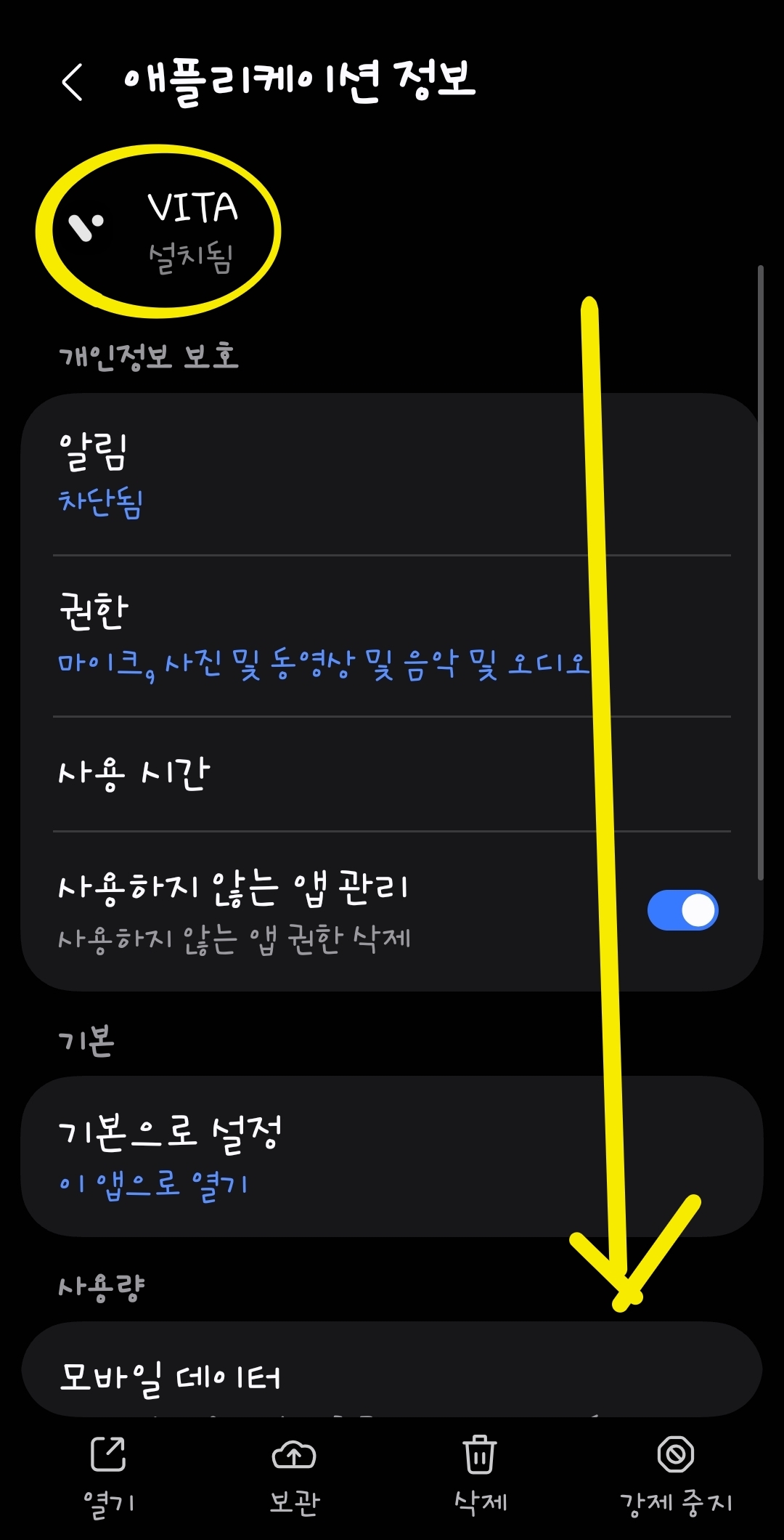 🎈앱 및 기기 재시작 : VITA 앱을 완전히 종료하고 기기를 다시 시작해 보세요.