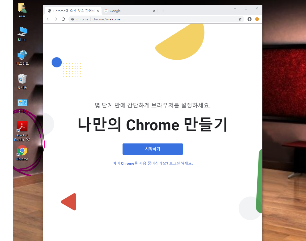 8. 이때 은근 슬쩍 구글 툴바를 사용할지 묻습니다. 저는 필요없으니까 사용 안함 선택하고 갤럭시북 플렉스 노트북의 바탕화면을 보니 다운로드가 잘된게 확인됩니다.