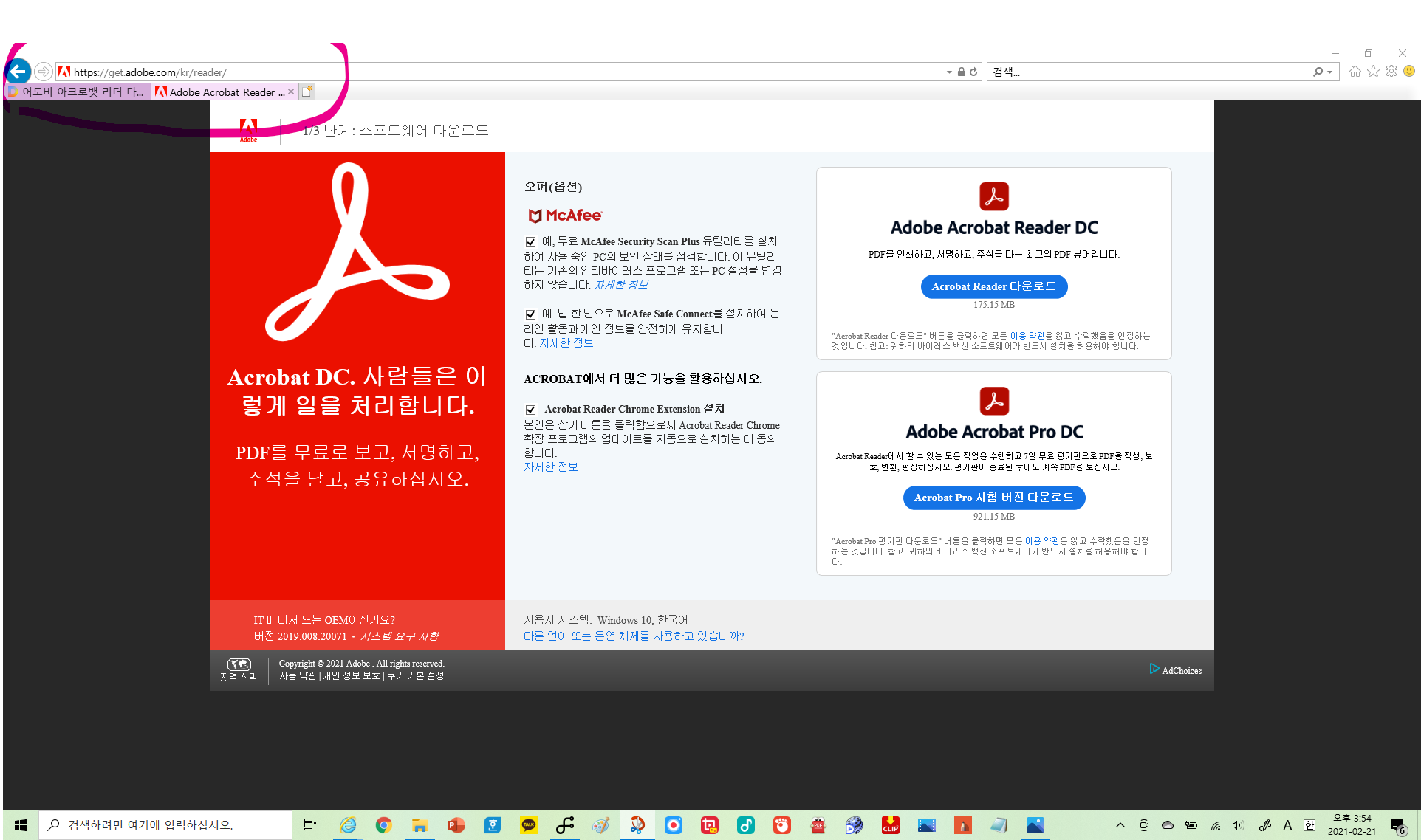 1. 주소창에 《 https://get.adobe.com/kr/reader 》를 입력합니다.
