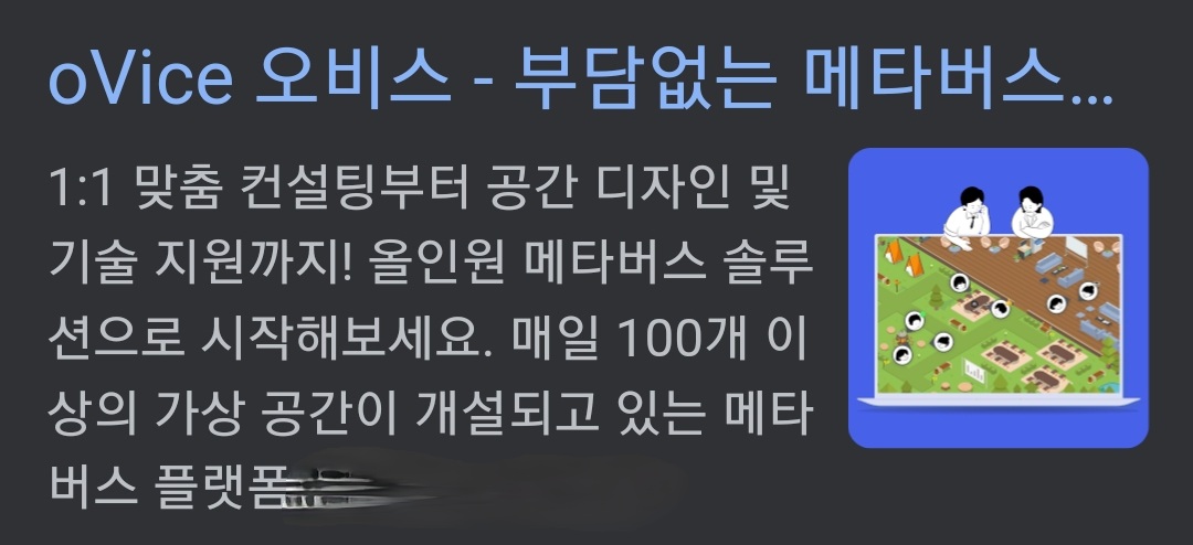 비즈니스 메타버스 플랫폼 이라는 설명을 찾을 수 있었습니다.