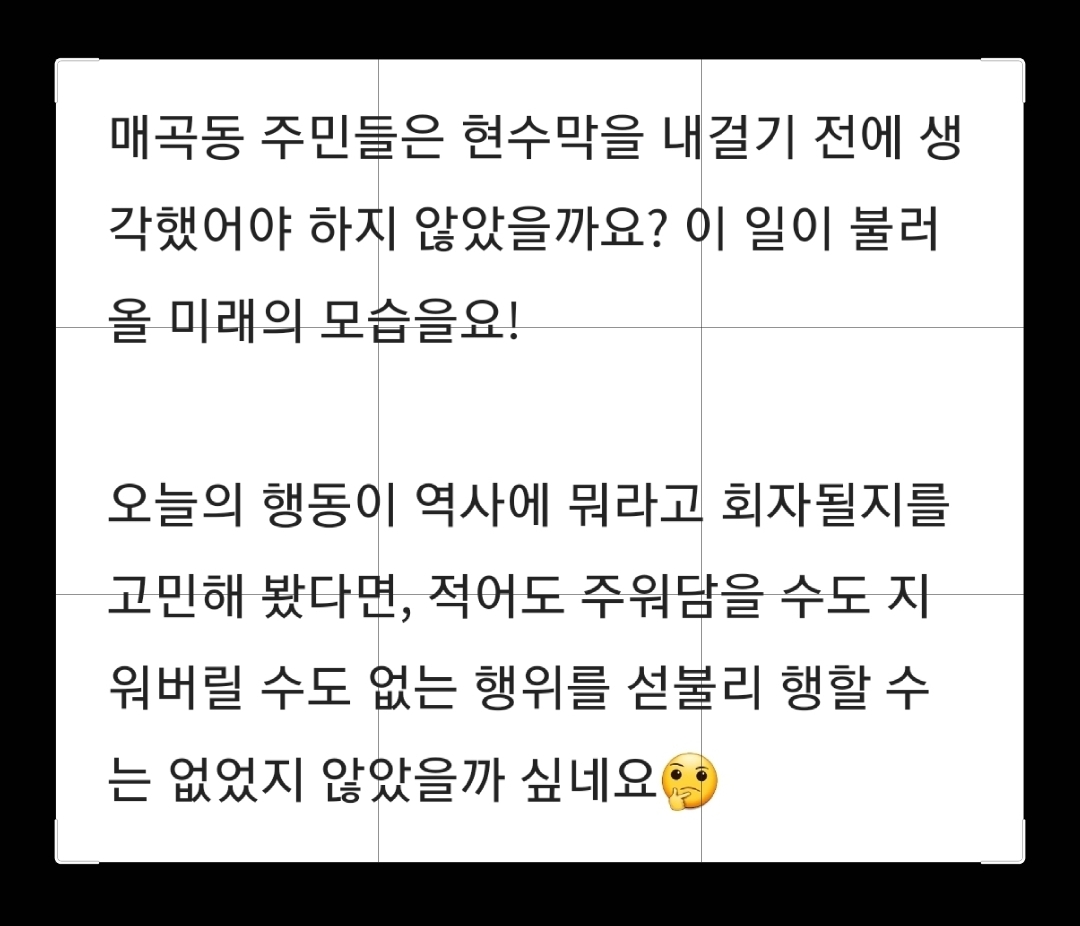 🎈매곡동 주민들은 현수막을 내걸기 전에 생각했어야 하지 않았을까요? 이 일이 불러올 미래의 모습을요!